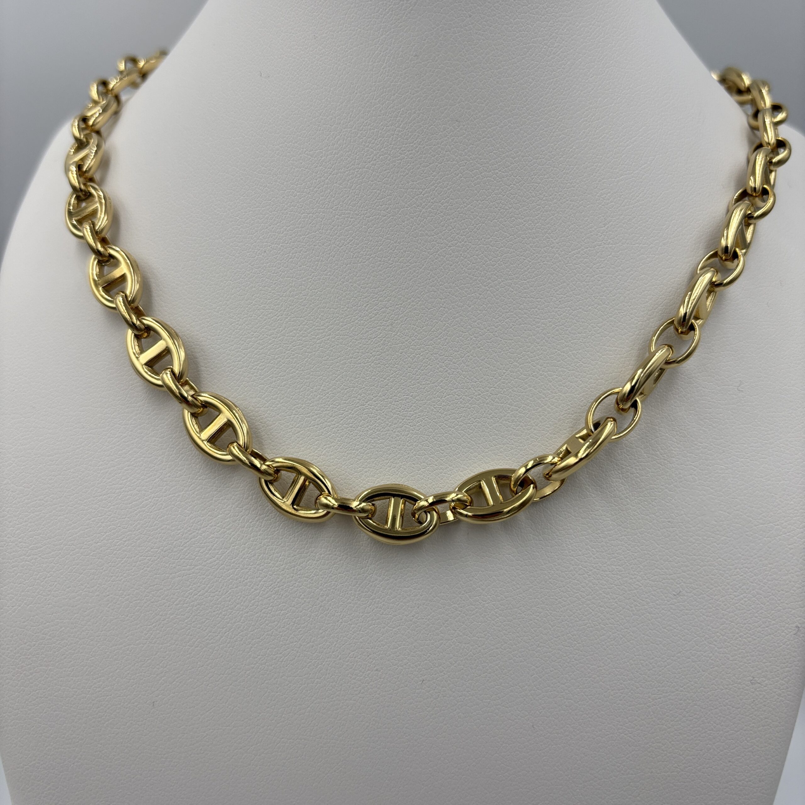 Naszyjnik stalowy w złotym kolorze to propozycja dla kobiet, które cenią nowoczesny styl i wyraziste dodatki. Ten naszyjnik doskonale podkreśla charakter stylizacji i sprawdzi się zarówno na co dzień, jak i na specjalne okazje.Ten łańcuszek dla niej wykonany ze stali to propozycja dla kobiet, które cenią nowoczesny styl i wyraziste dodatki. Jego charakterystyczny, lekko masywny splot przyciąga wzrok i nadaje całości wyjątkowego charakteru, jednocześnie pozostając uniwersalnym elementem biżuterii.