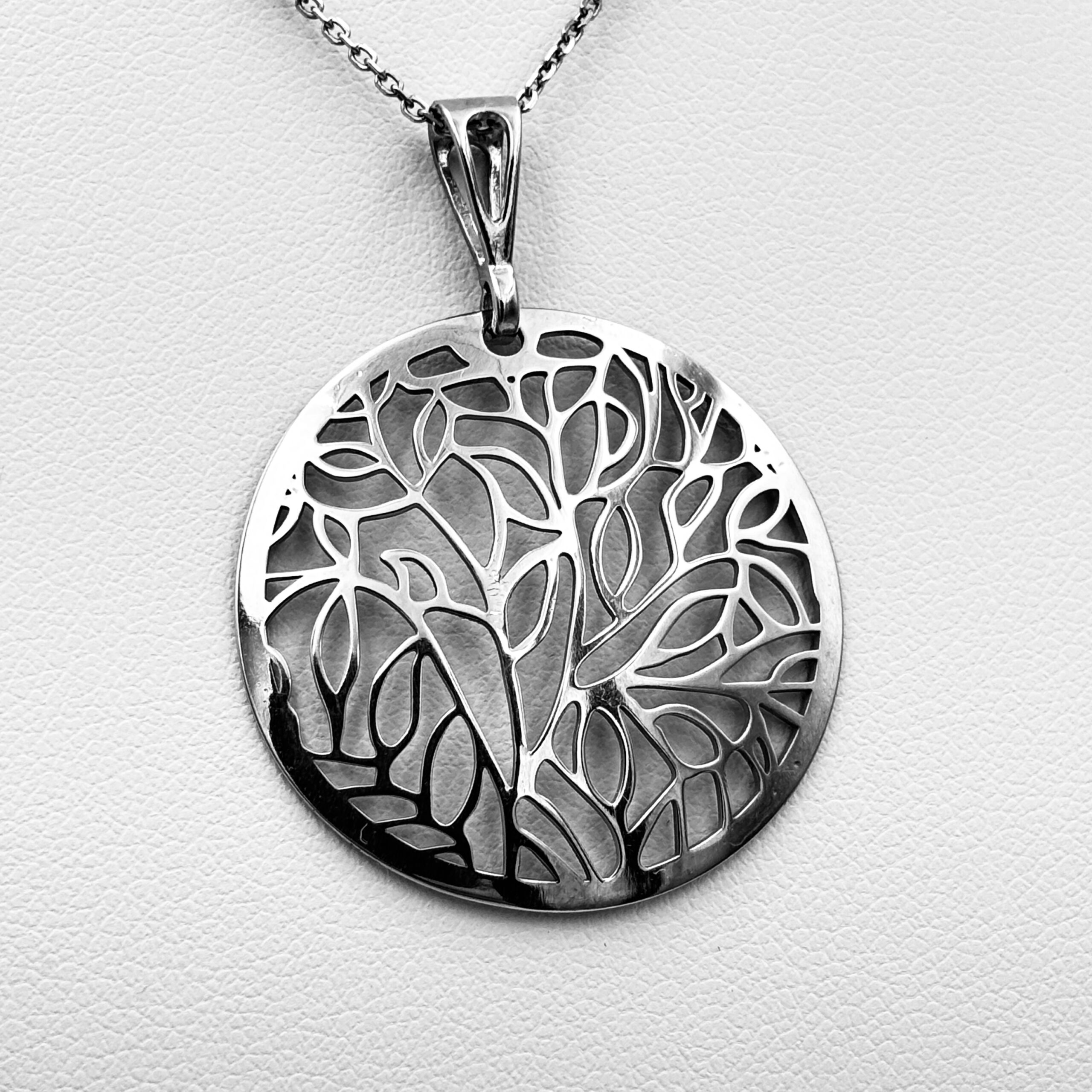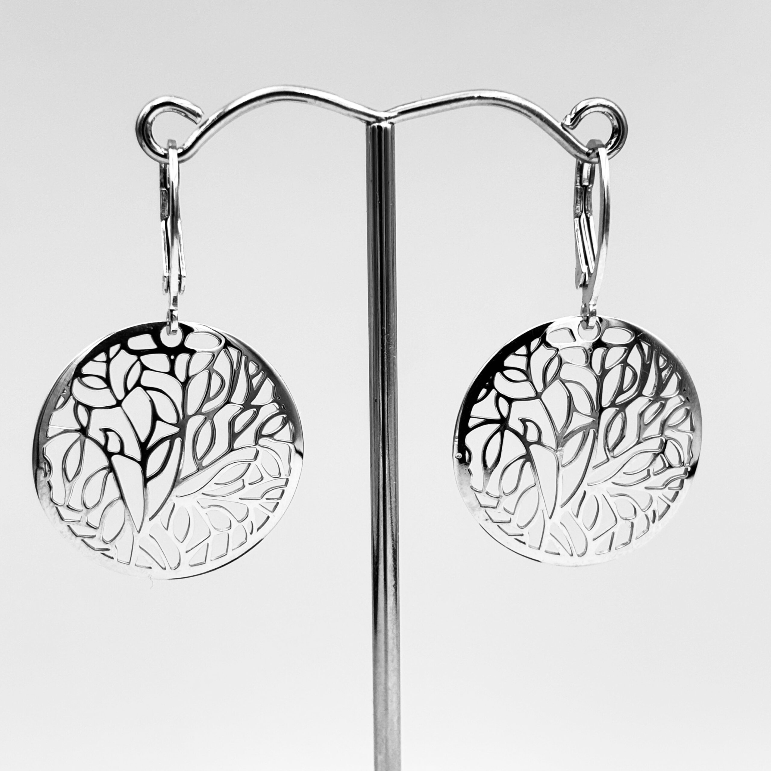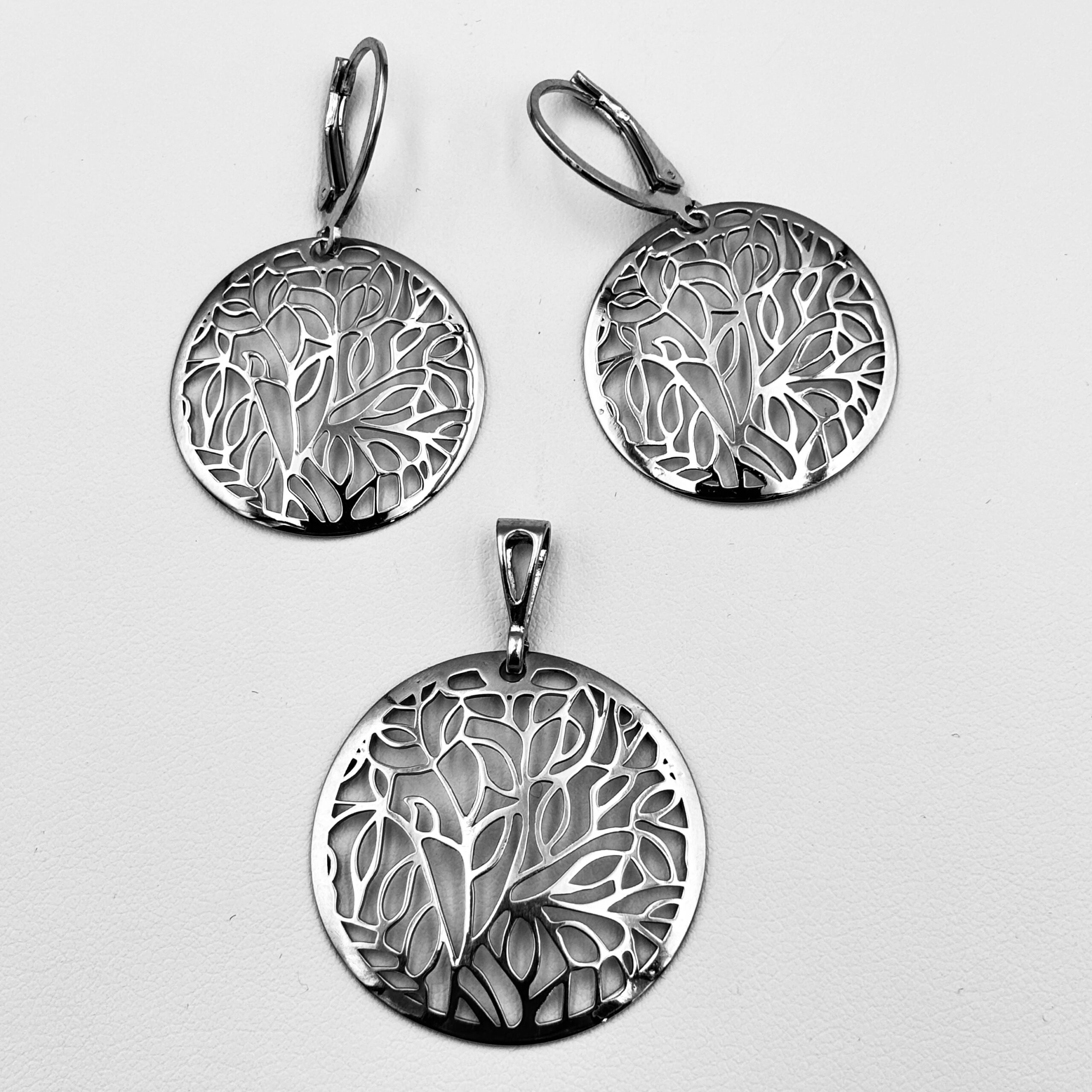 W skład kompletu wchodzi starannie wykonany wisior o wymiarach 40 mm x 30 mm oraz kolczyki o długości 40 mm i szerokości 25 mm. Całość została stworzona z myślą o tych, którzy cenią zarówno estetykę, jak i komfort noszenia. Zapięcia kolczyków są na uszko, dzięki czemu biżuteria jest wygodna i bezpieczna w użytkowaniu.
