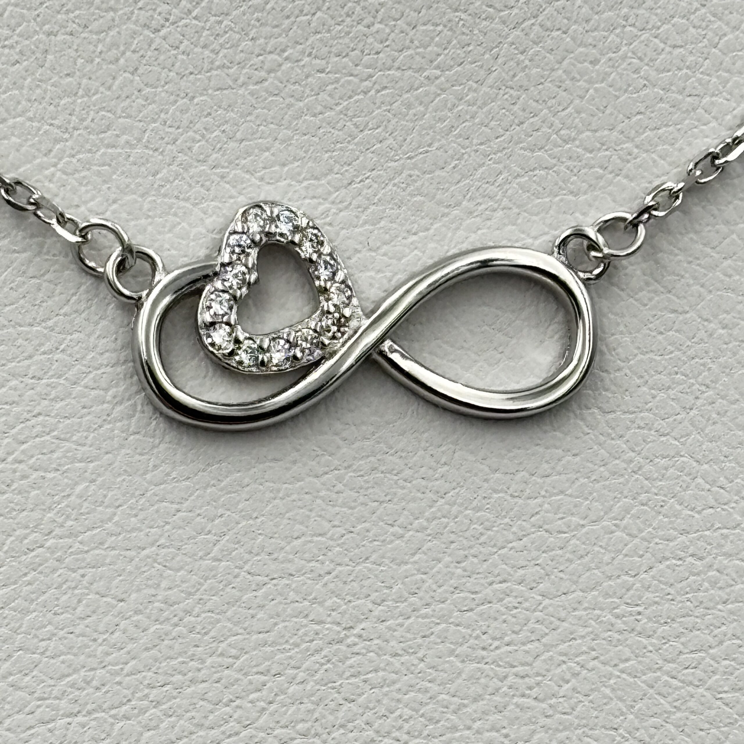 Srebrna celebrytka – nieskończoność i serduszko wysadzone cyrkoniami