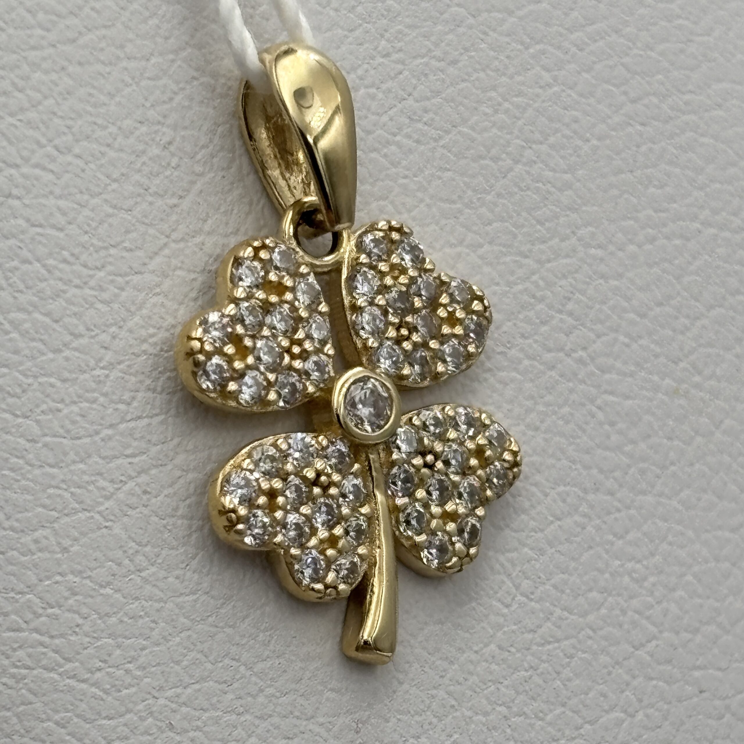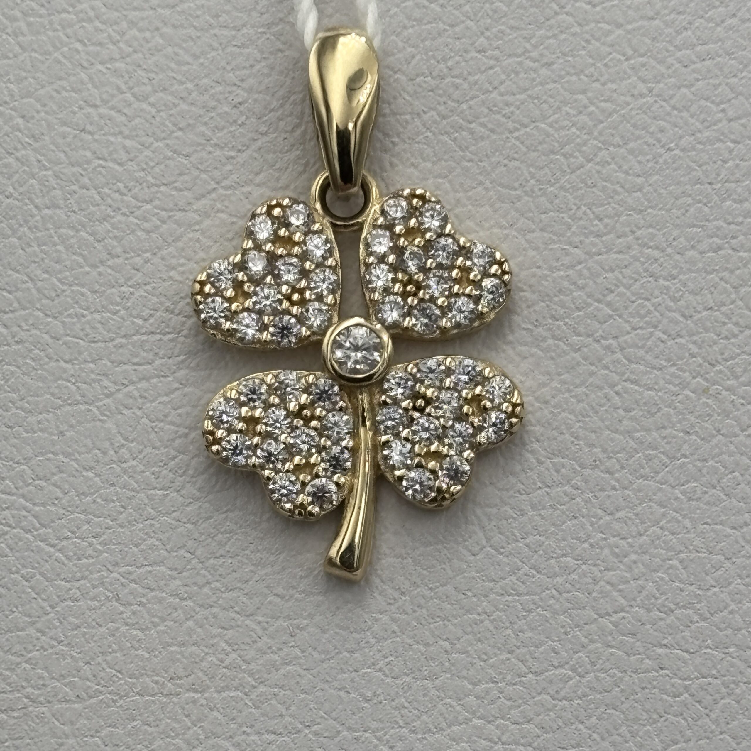Złoty wisiorek koniczynka z cyrkoniami – symbol szczęścia